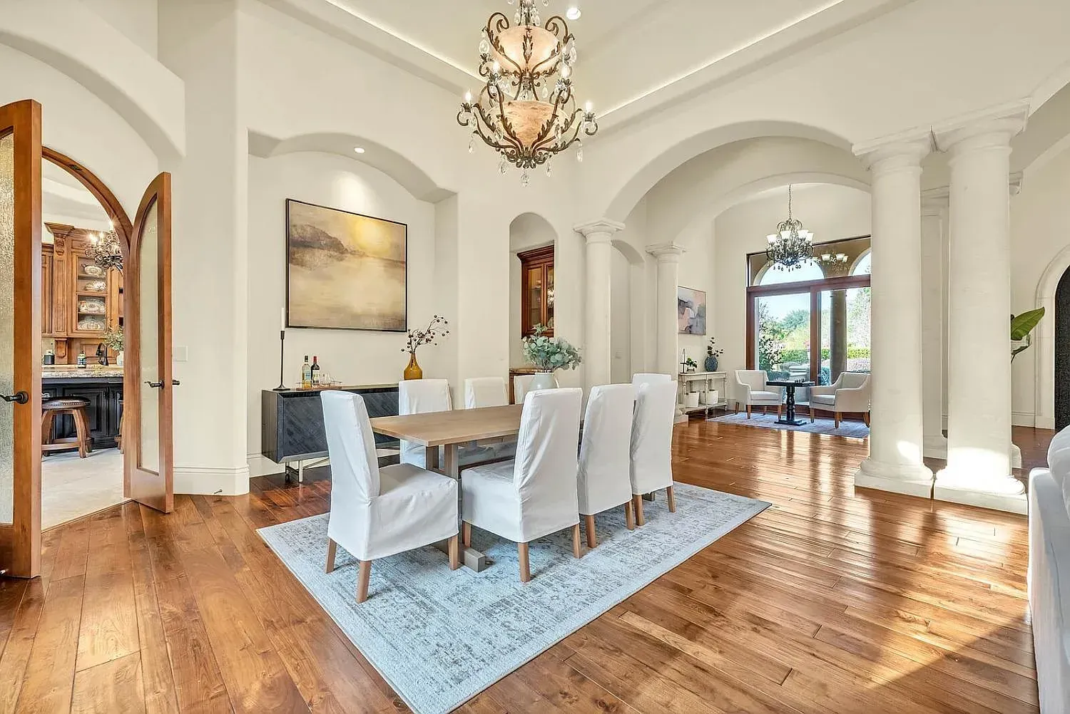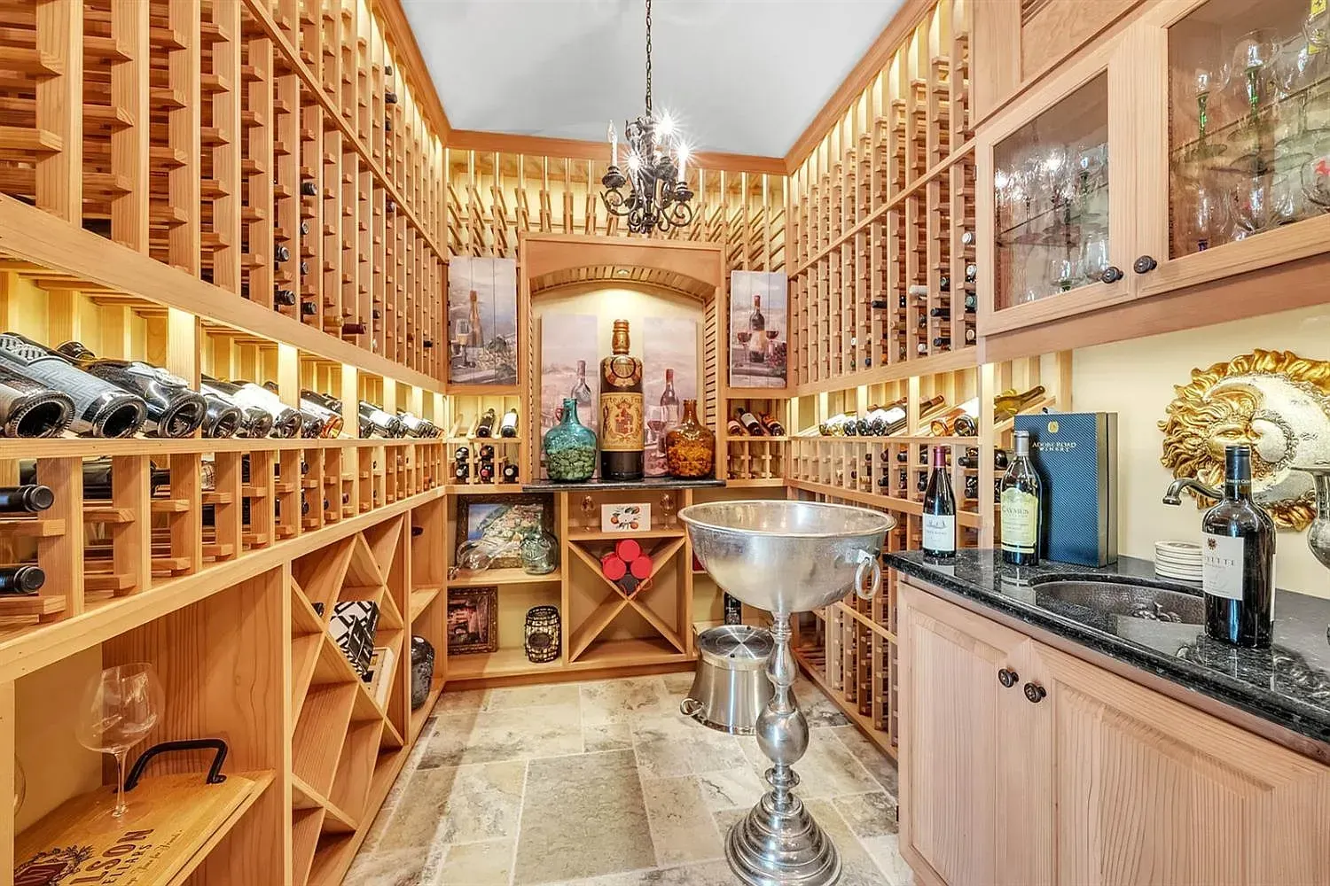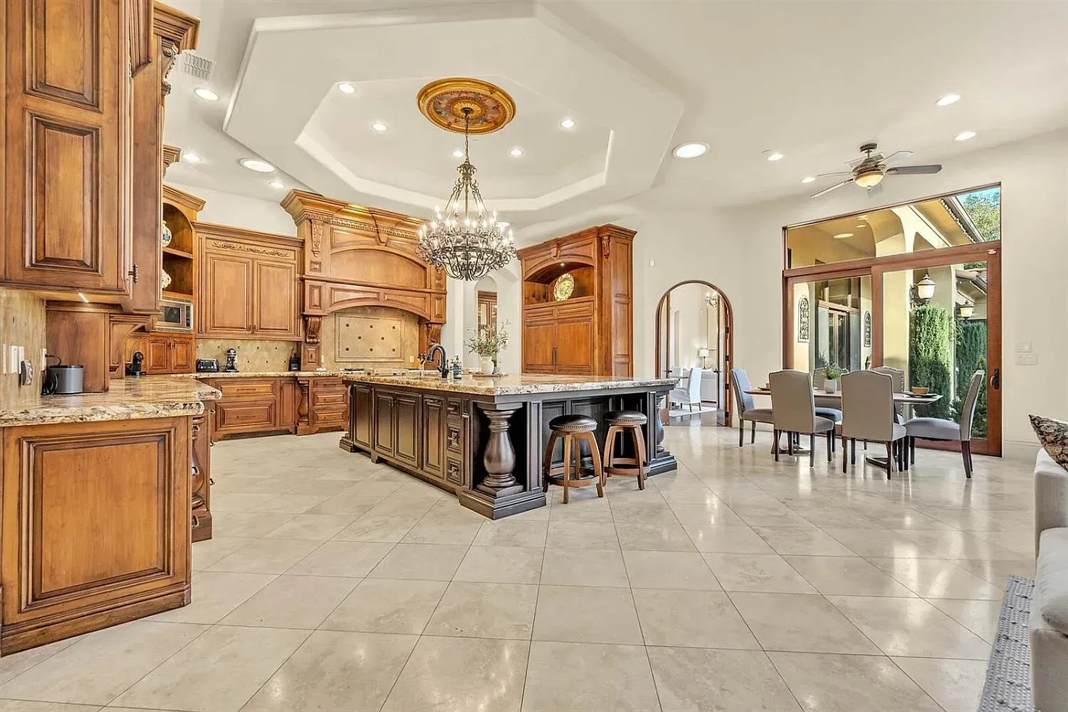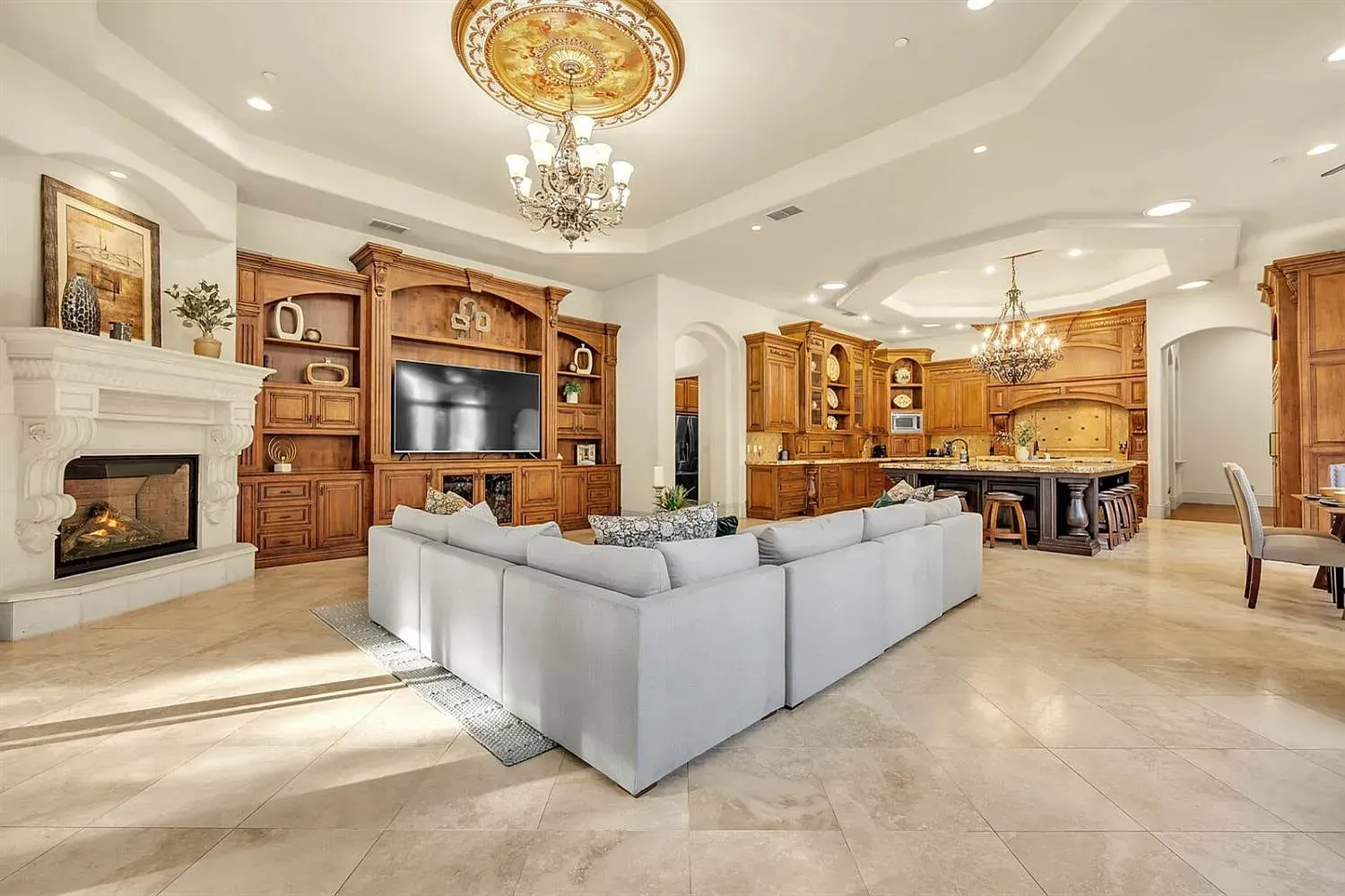 In the exclusive Terracina gated community, this estate spans over 3 pristine acres. The 7,800 +/- sq ft residence, with primary living on one level, offers sophisticated comfort featuring 5-6 bedrooms, a bonus room, office, retreat, and 6 full plus 4 half baths. Its thoughtful floor plan seamlessly connects elegant formal spaces to relaxed family areas. Entertain in the gourmet chef's kitchen with an adjoining back kitchen for catering, or unwind in the resort-style backyard with a pool, built-in BBQ, fireplace, bathroom, and outdoor shower. The main-floor primary suite is a serene retreat with a fireplace and direct yard access. A spectacular bonus room includes a wine cellar, fireplace, and custom bar. The home office boasts custom built-ins, and the 6-car garage delights automotive enthusiasts with cabinetry and a bathroom. An upstairs retreat with en-suite, wet bar, and office is ideal for guests or multigenerational living. Owned solar ensures low utility costs. Meticulously curated, this estate beautifully blends luxury, comfort, and sustainability.