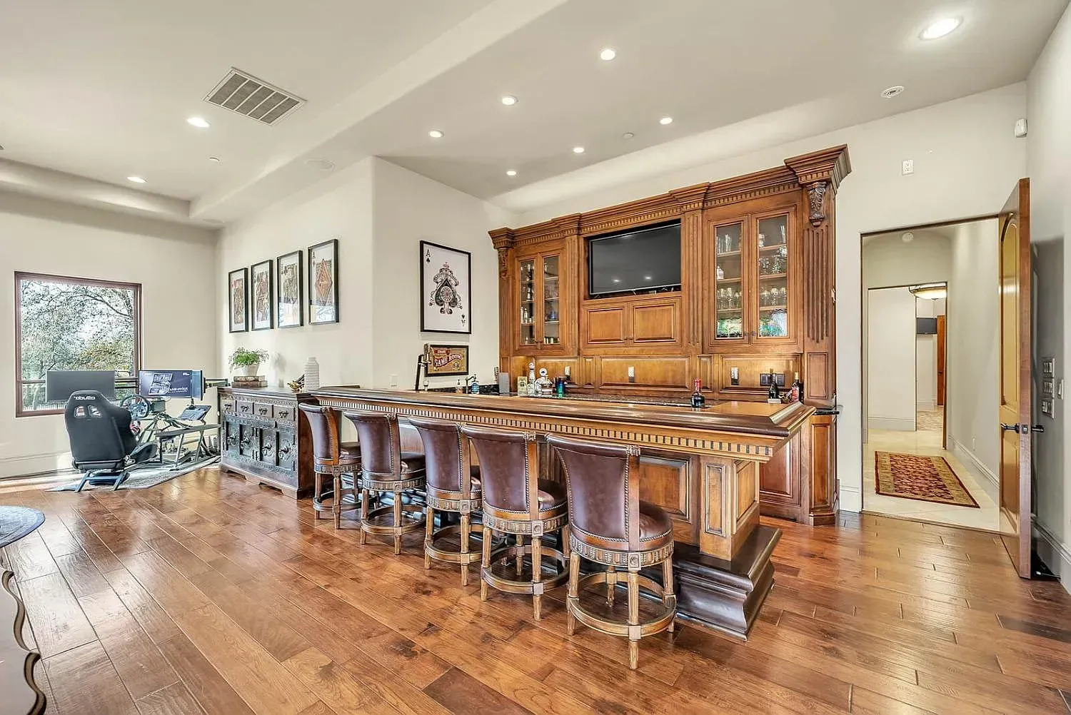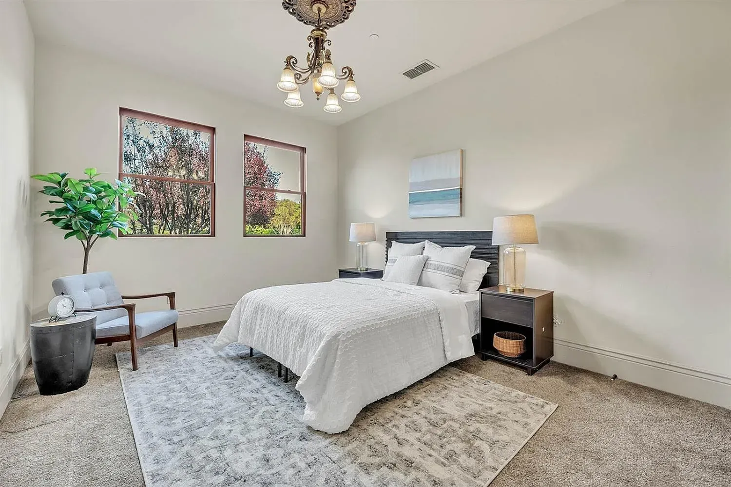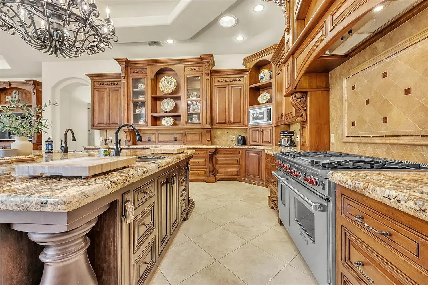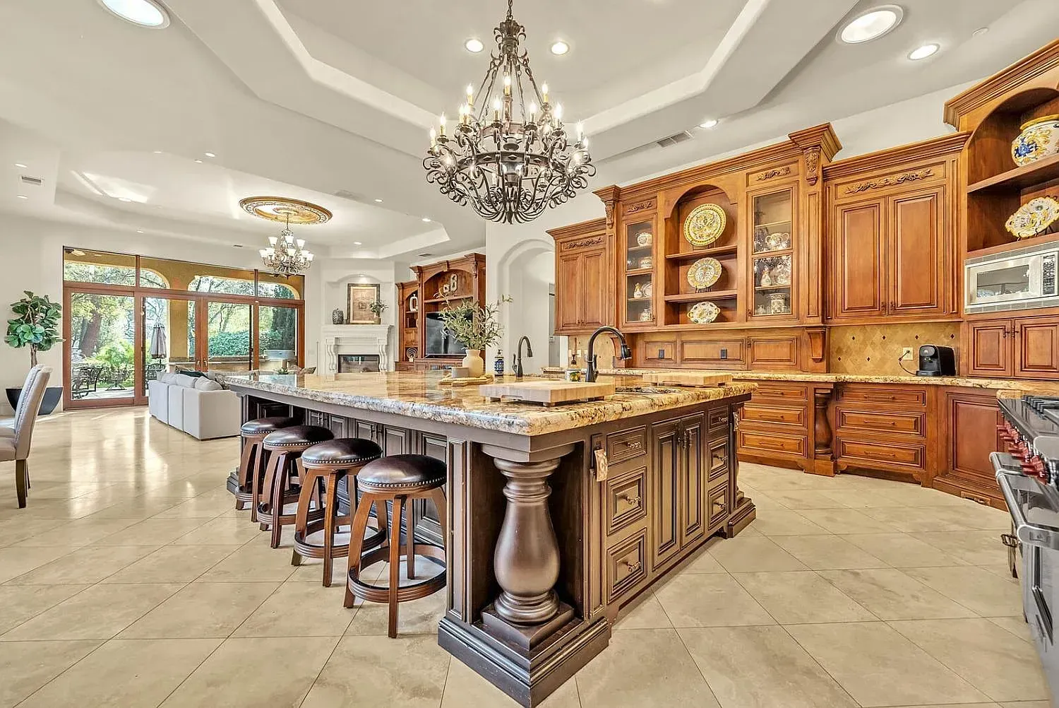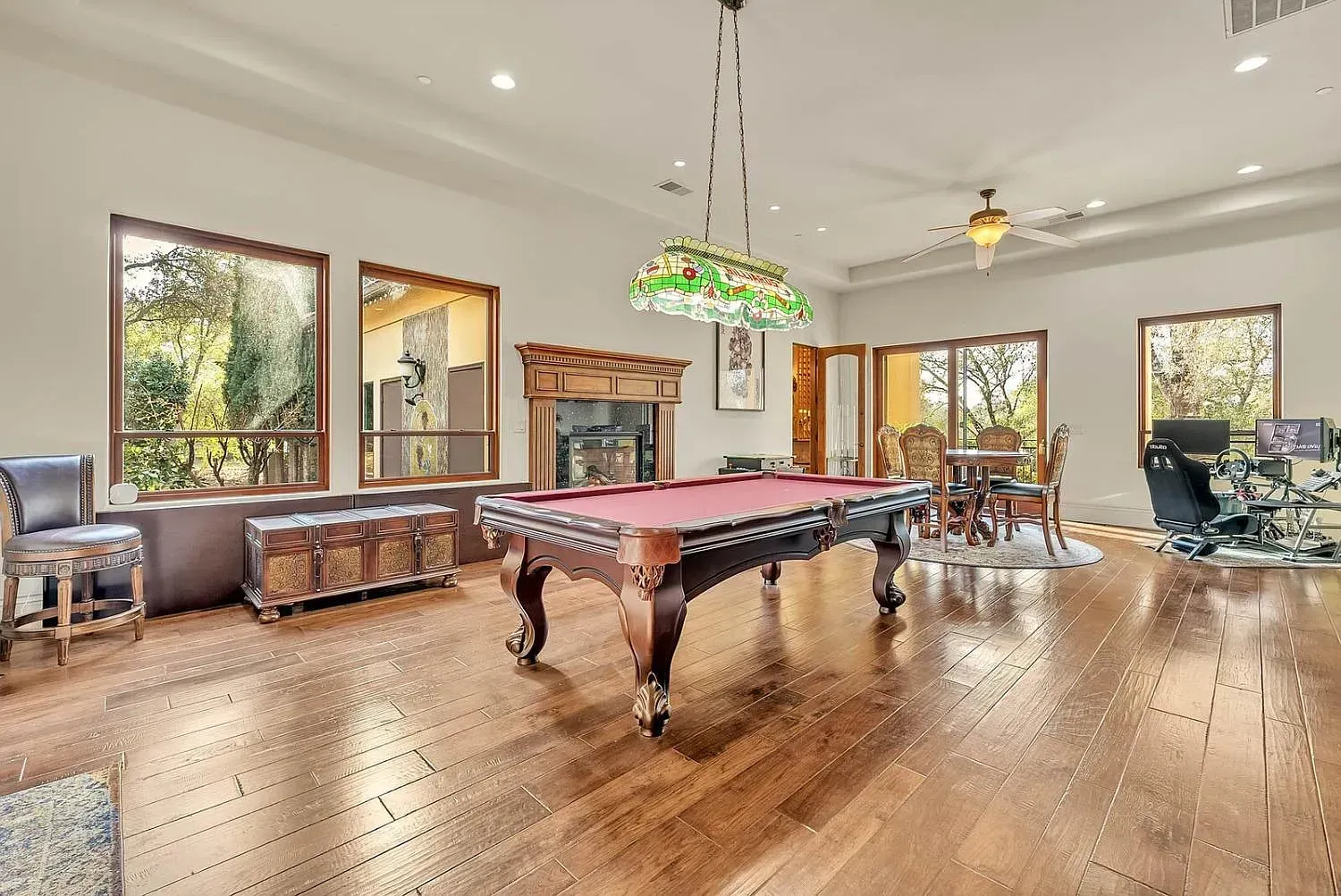 In the exclusive Terracina gated community, this estate spans over 3 pristine acres. The 7,800 +/- sq ft residence, with primary living on one level, offers sophisticated comfort featuring 5-6 bedrooms, a bonus room, office, retreat, and 6 full plus 4 half baths. Its thoughtful floor plan seamlessly connects elegant formal spaces to relaxed family areas. Entertain in the gourmet chef's kitchen with an adjoining back kitchen for catering, or unwind in the resort-style backyard with a pool, built-in BBQ, fireplace, bathroom, and outdoor shower. The main-floor primary suite is a serene retreat with a fireplace and direct yard access. A spectacular bonus room includes a wine cellar, fireplace, and custom bar. The home office boasts custom built-ins, and the 6-car garage delights automotive enthusiasts with cabinetry and a bathroom. An upstairs retreat with en-suite, wet bar, and office is ideal for guests or multigenerational living. Owned solar ensures low utility costs. Meticulously curated, this estate beautifully blends luxury, comfort, and sustainability.