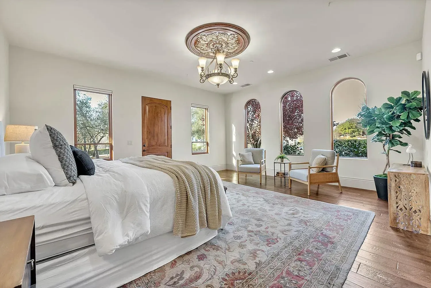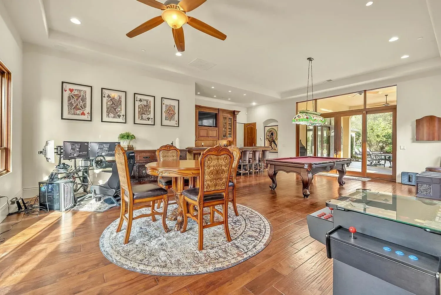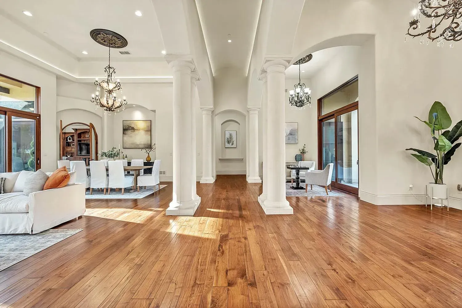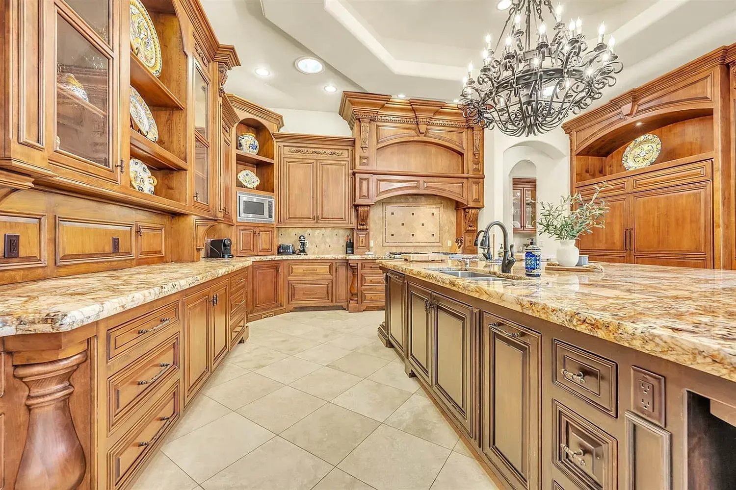 In the exclusive Terracina gated community, this estate spans over 3 pristine acres. The 7,800 +/- sq ft residence, with primary living on one level, offers sophisticated comfort featuring 5-6 bedrooms, a bonus room, office, retreat, and 6 full plus 4 half baths. Its thoughtful floor plan seamlessly connects elegant formal spaces to relaxed family areas. Entertain in the gourmet chef's kitchen with an adjoining back kitchen for catering, or unwind in the resort-style backyard with a pool, built-in BBQ, fireplace, bathroom, and outdoor shower. The main-floor primary suite is a serene retreat with a fireplace and direct yard access. A spectacular bonus room includes a wine cellar, fireplace, and custom bar. The home office boasts custom built-ins, and the 6-car garage delights automotive enthusiasts with cabinetry and a bathroom. An upstairs retreat with en-suite, wet bar, and office is ideal for guests or multigenerational living. Owned solar ensures low utility costs. Meticulously curated, this estate beautifully blends luxury, comfort, and sustainability.