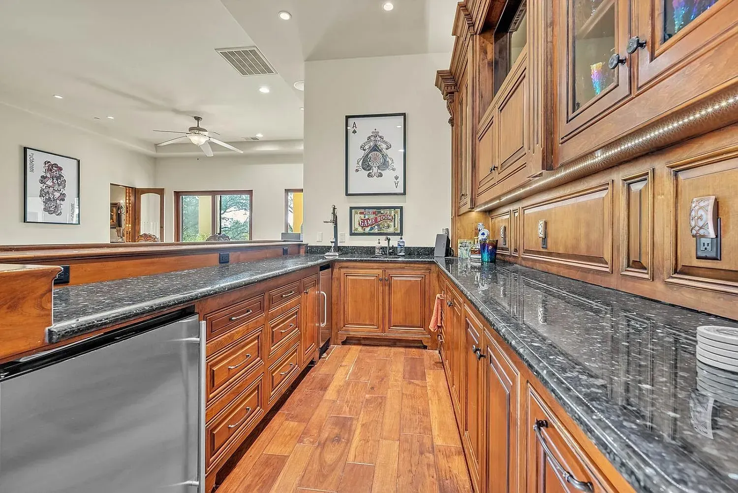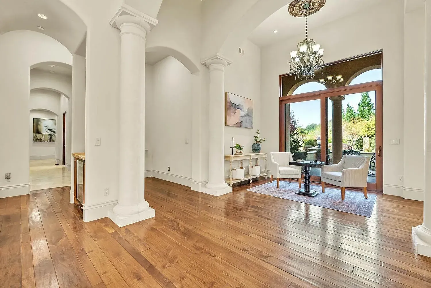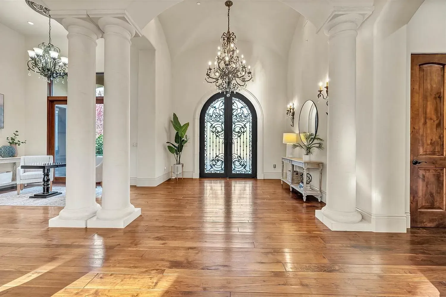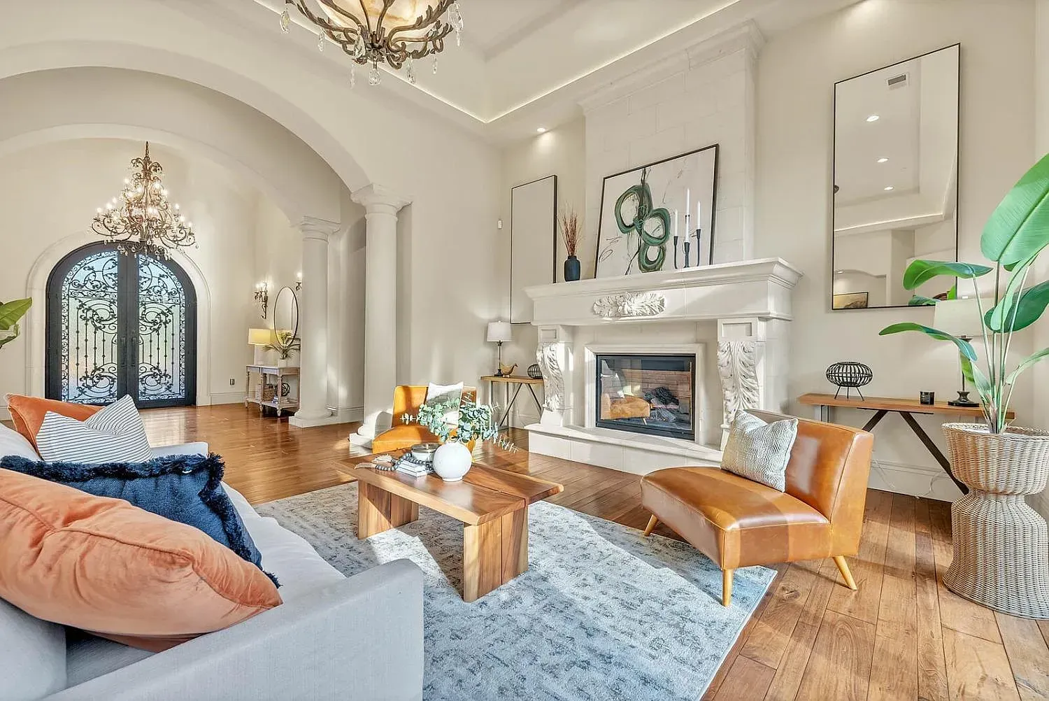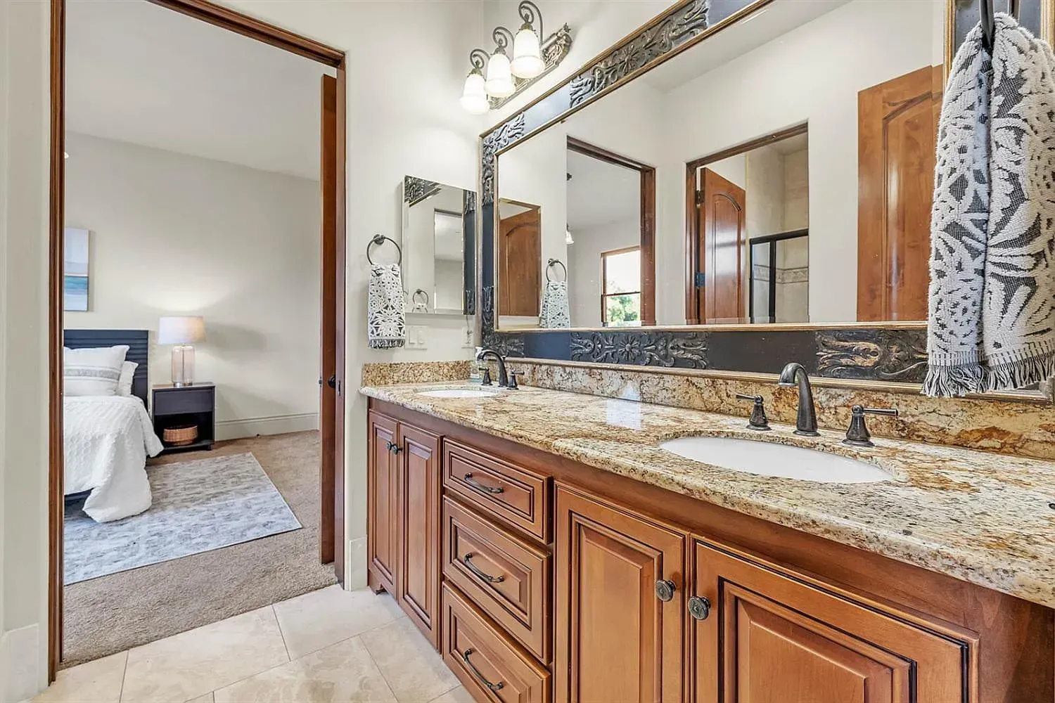 In the exclusive Terracina gated community, this estate spans over 3 pristine acres. The 7,800 +/- sq ft residence, with primary living on one level, offers sophisticated comfort featuring 5-6 bedrooms, a bonus room, office, retreat, and 6 full plus 4 half baths. Its thoughtful floor plan seamlessly connects elegant formal spaces to relaxed family areas. Entertain in the gourmet chef's kitchen with an adjoining back kitchen for catering, or unwind in the resort-style backyard with a pool, built-in BBQ, fireplace, bathroom, and outdoor shower. The main-floor primary suite is a serene retreat with a fireplace and direct yard access. A spectacular bonus room includes a wine cellar, fireplace, and custom bar. The home office boasts custom built-ins, and the 6-car garage delights automotive enthusiasts with cabinetry and a bathroom. An upstairs retreat with en-suite, wet bar, and office is ideal for guests or multigenerational living. Owned solar ensures low utility costs. Meticulously curated, this estate beautifully blends luxury, comfort, and sustainability.