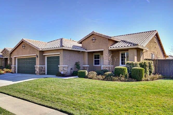 Meticulously maintained single story in Fiddyment Farms on corner lotbwaiting for you to call it home! 4 bedrooms, spacious living/dining room, great room concept, wood look tile flooring, slab counters, stainless appliances, and plenty of cabinet space. Professionally landscaped yard provides a stamped concrete covered patio, slab for a hot tub, and grassy areas to play in. Located near walking trails, neighborhood parks, and schools.