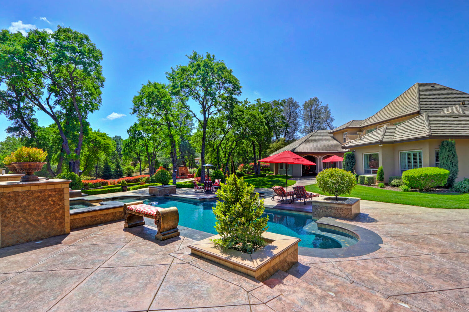 A rare find in sought after Loomis. This beauty is for the buyer that wants comfort yet elegance and who loves to utilizes the inside and outside for gatherings, fun, and leisure. The beautiful spacious great room welcomes you and is a lovely space open to the gourmet kitchen & nook w/ multiple fireplaces, tv's, and views of the spectacular yard. Downstairs master, office, secondary en-suite and additional game-room allow this home to also live as a 1-story. Upstairs you can enjoy 3 bedrooms, 2 bathrooms and a large bonus room. If you like entertaining, you will fall in love with this resort style yard. Plenty of space in this nearly 5 acre parcel to enjoy the pool, spa, built in BBQ, covered sitting area, fireplace and have additional space to build another structure or ride your bikes and quads. You will not want to miss the opportunity to view this private gorgeous estate close to schools, freeways, shops, and restaurants.