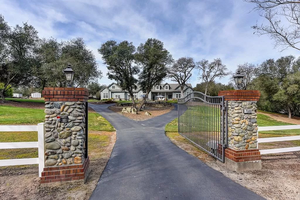 Drive up to your private gate and welcome to your fabulous sprawling front yard with mature trees and plenty of room for privacy and play. This approx 3800 sq ft home lives like a one story with the Primary suite and 4 secondary rooms on the main level. The Kitchen and nook are adjoining the family room making it great for conversation and entertaining. The home features a large walk-in pantry, 4 fireplaces, a modern elegance, a 4 car garage, and a large private room upstairs with its own bathroom and kitchen (no appliances)along with lots of storage area. This beauty sits on a tucked away on a serene setting in the heart of granite bay on over 2 acres of gorgeous grounds.