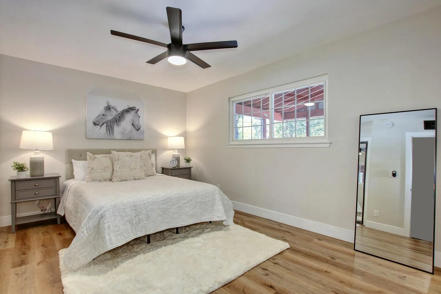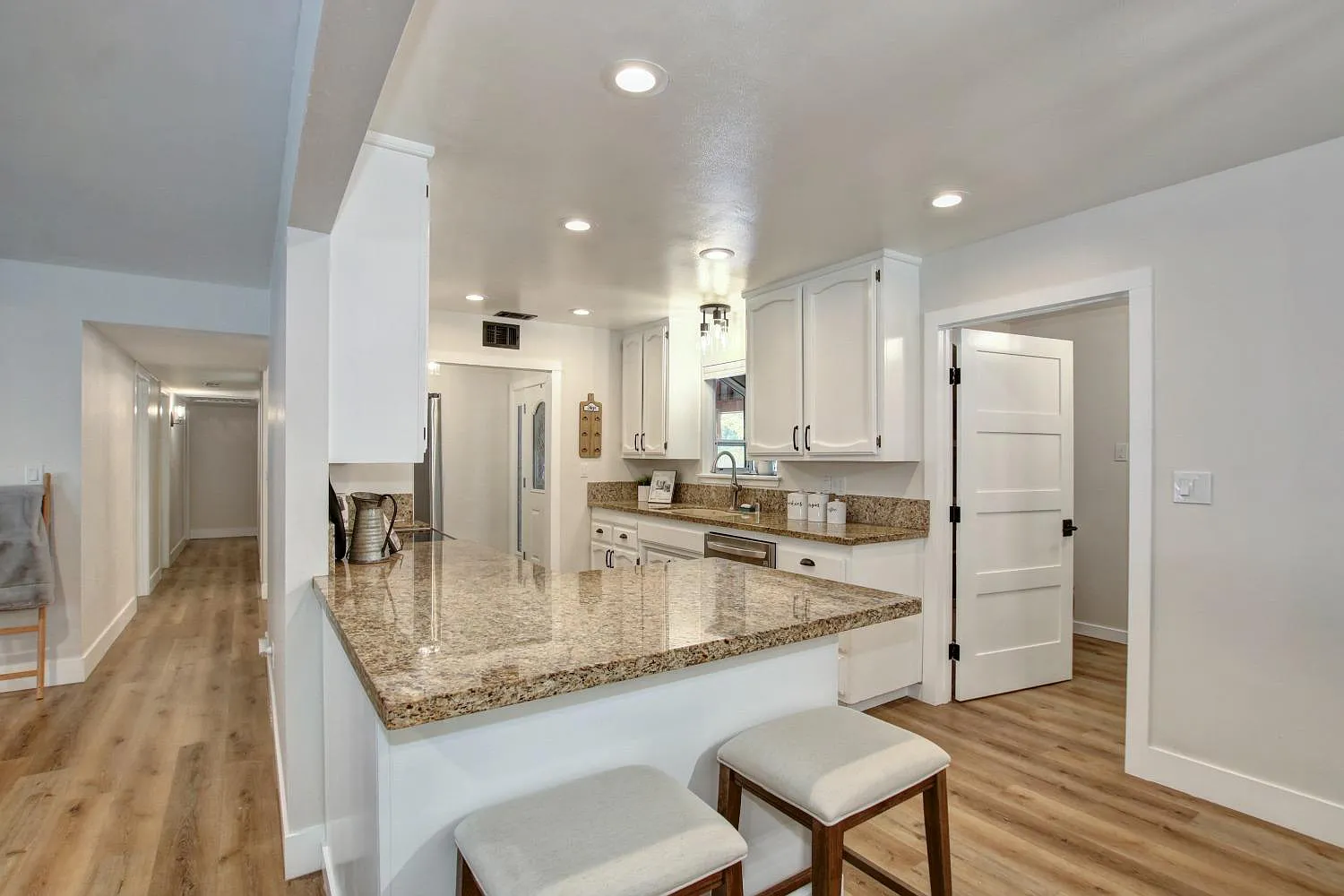 Remodeled Gorgeous 1-story home with 4 bedrooms and 2 bathrooms on over 1/2 acre lot in the heart of Granite Bay. As you enter the circular driveway, you are greeted by a large porch perfect for lounging and enjoying all the seasons. Once you enter, you will love the bright and light vibe of the upgrades which include Luxury vinyl plank floors, 5 1/2 inch baseboards, custom solid core doors. 75 gallon water heater and solar allow for low utility bills. The large flat yard is a perfect blank canvas for all your dining, entertaining, and relaxations needs.